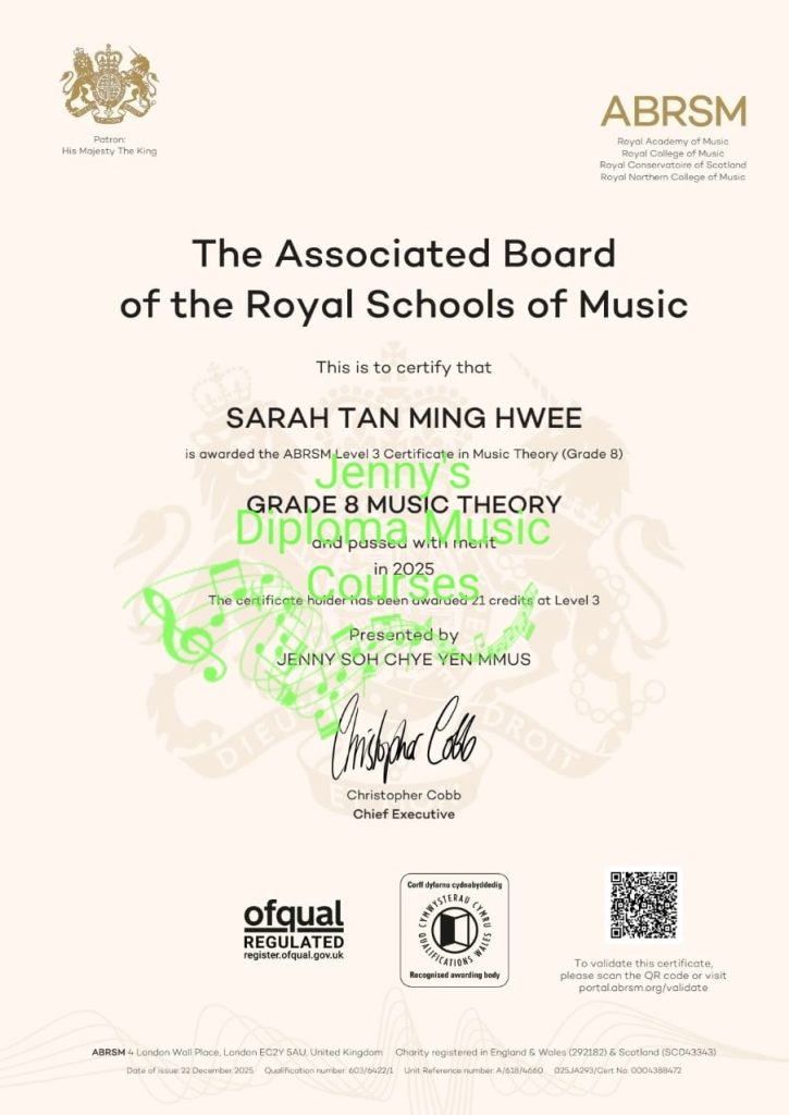Looking back, I realise that music theory has shaped my life far beyond teaching and exams. It has deepened my music appreciation, connected me with people across the world, trained my mind to think clearly, and filled my daily life with creativity and joy. Music theory, when taught with heart, humour, and insight, is not about memorising rules. It is about understanding music, understanding ourselves, and finding meaning through sound. And for me, as a music teacher in Singapore, that is the greatest reward of all.
