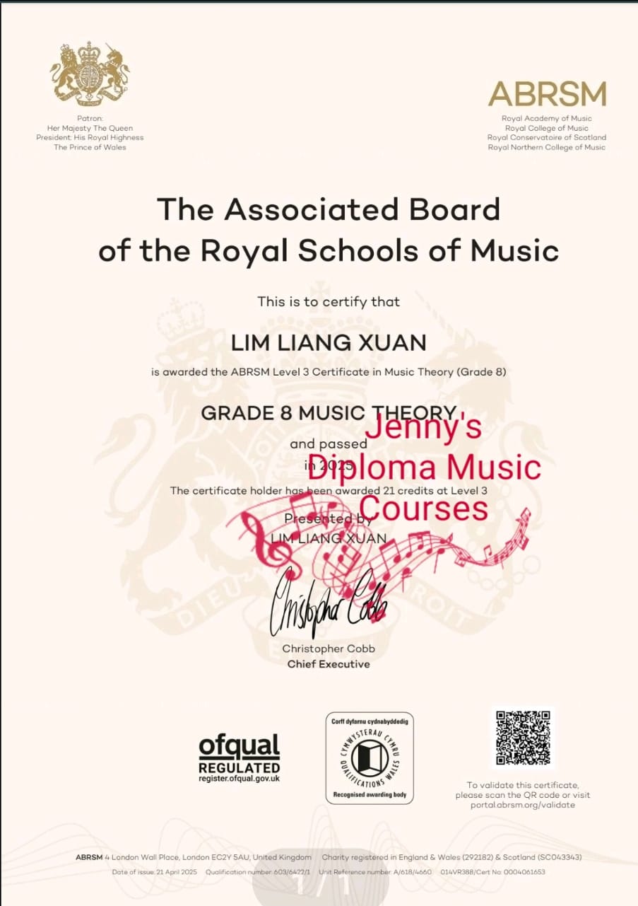 Teaching music theory has also made my life more meaningful. The joy does not come from certificates or distinctions — those are simply outcomes. What matters most are the shared moments during lessons: the laughter, the funny musical misunderstandings, and the sudden “aha!” moments when something finally clicks. That is why I sometimes share certificates online. Not to show off achievements, but to remember the journey behind them. Each result represents a small chapter of a musical life story we created together. The memories always come first; the results come second.